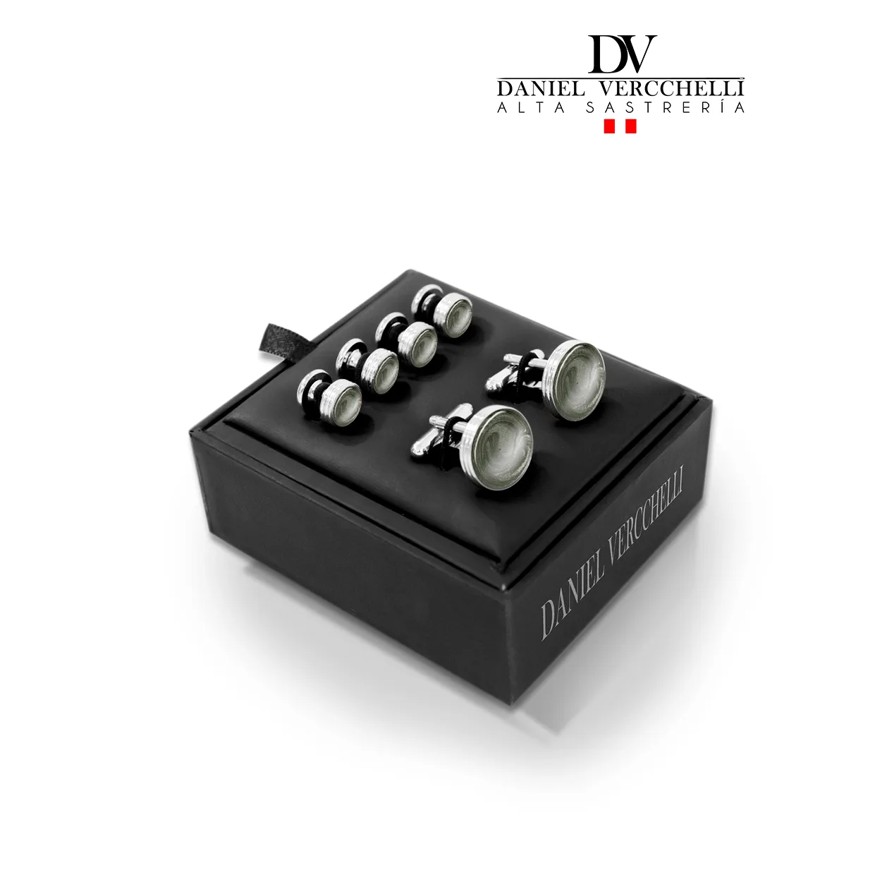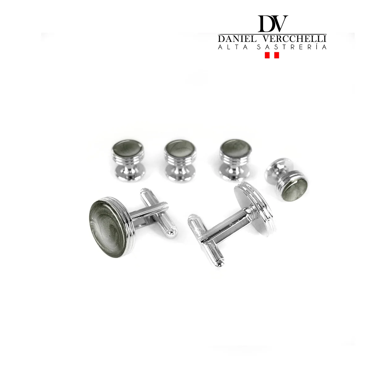 Gemelo Tuxedo Rodio 4×2 f. Plata c/Gris COD. GB1750-4