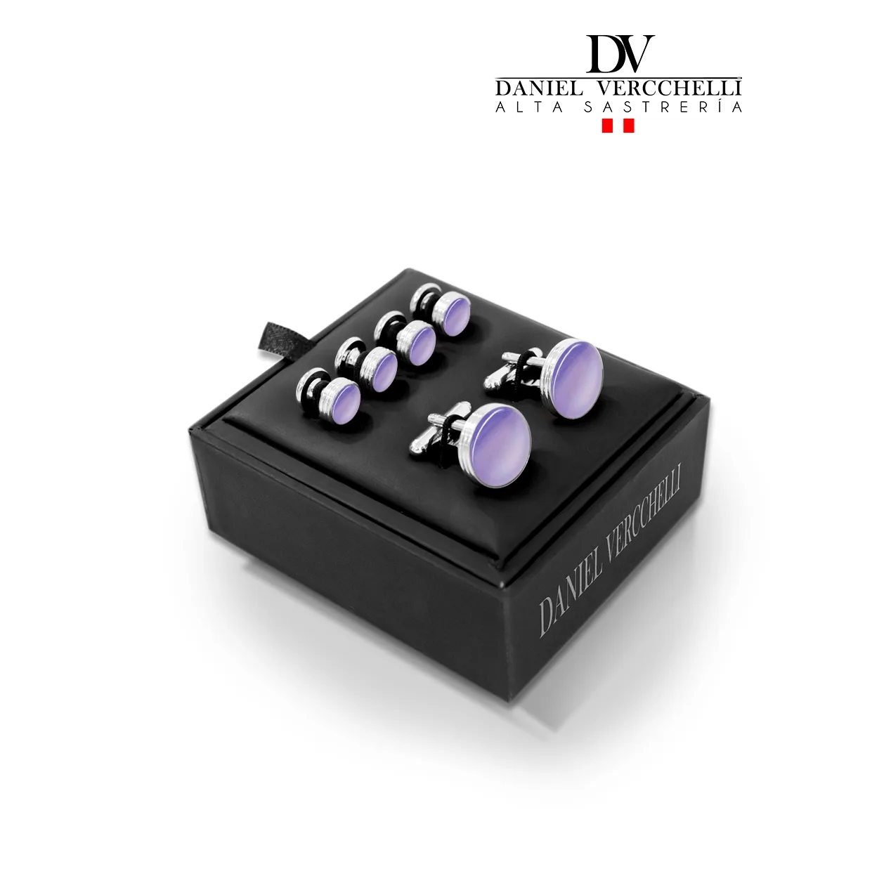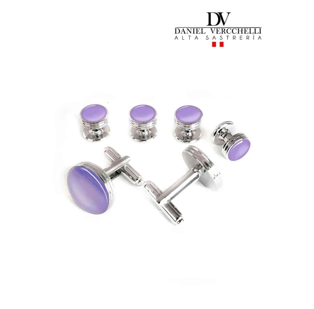 Gemelo Tuxedo Rodio 4×2 f. Plata c/Lila COD. GB1750-6