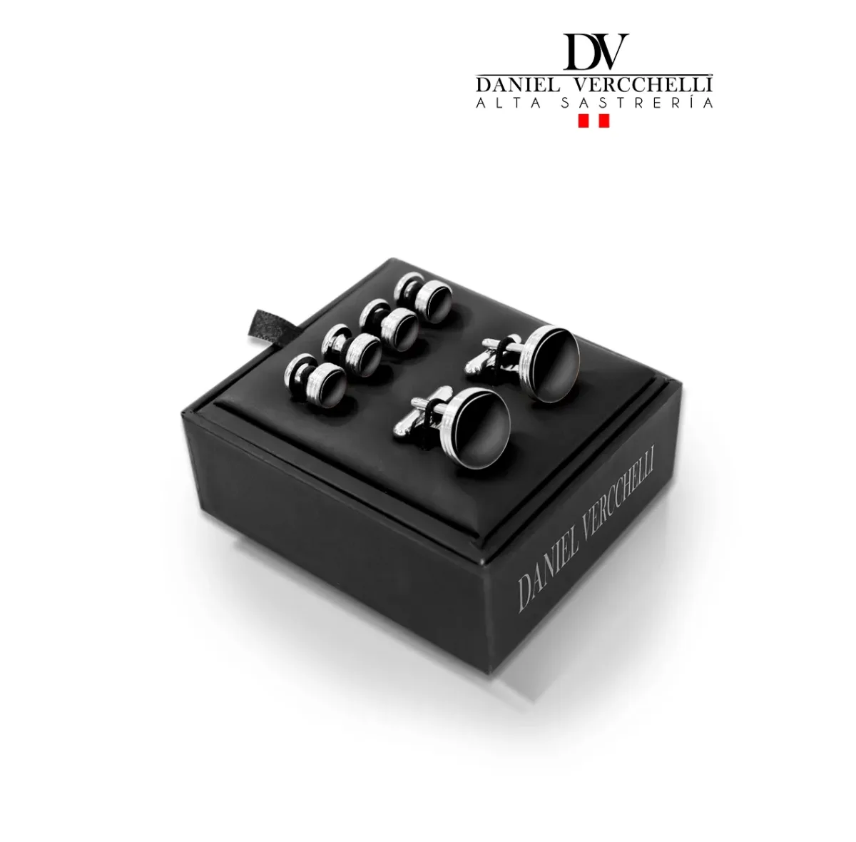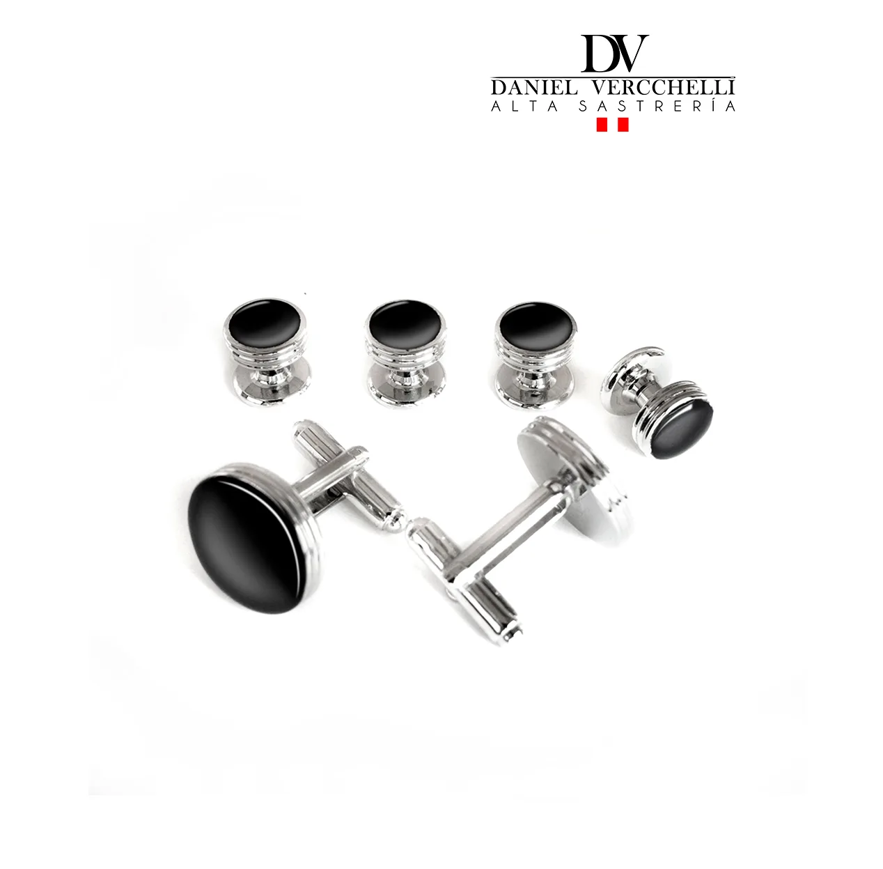 Gemelo Tuxedo Rodio 4×2 f. Plata c/Negro COD. GB1750-1