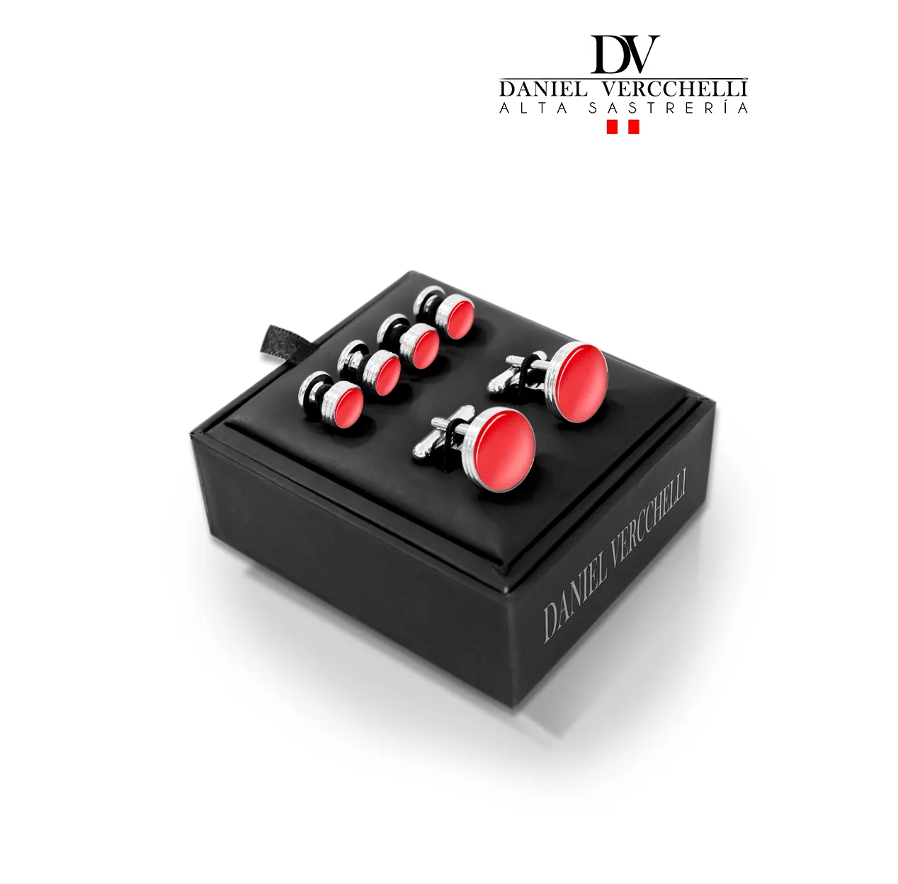 Gemelo Tuxedo Rodio 4×2 f. Plata c/Rojo COD. GB1750-5